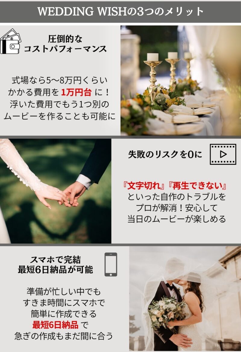 そして驚きなのが、なんと、WEDDING WISHでは破格の1万円台でムービーを作ることができることです。